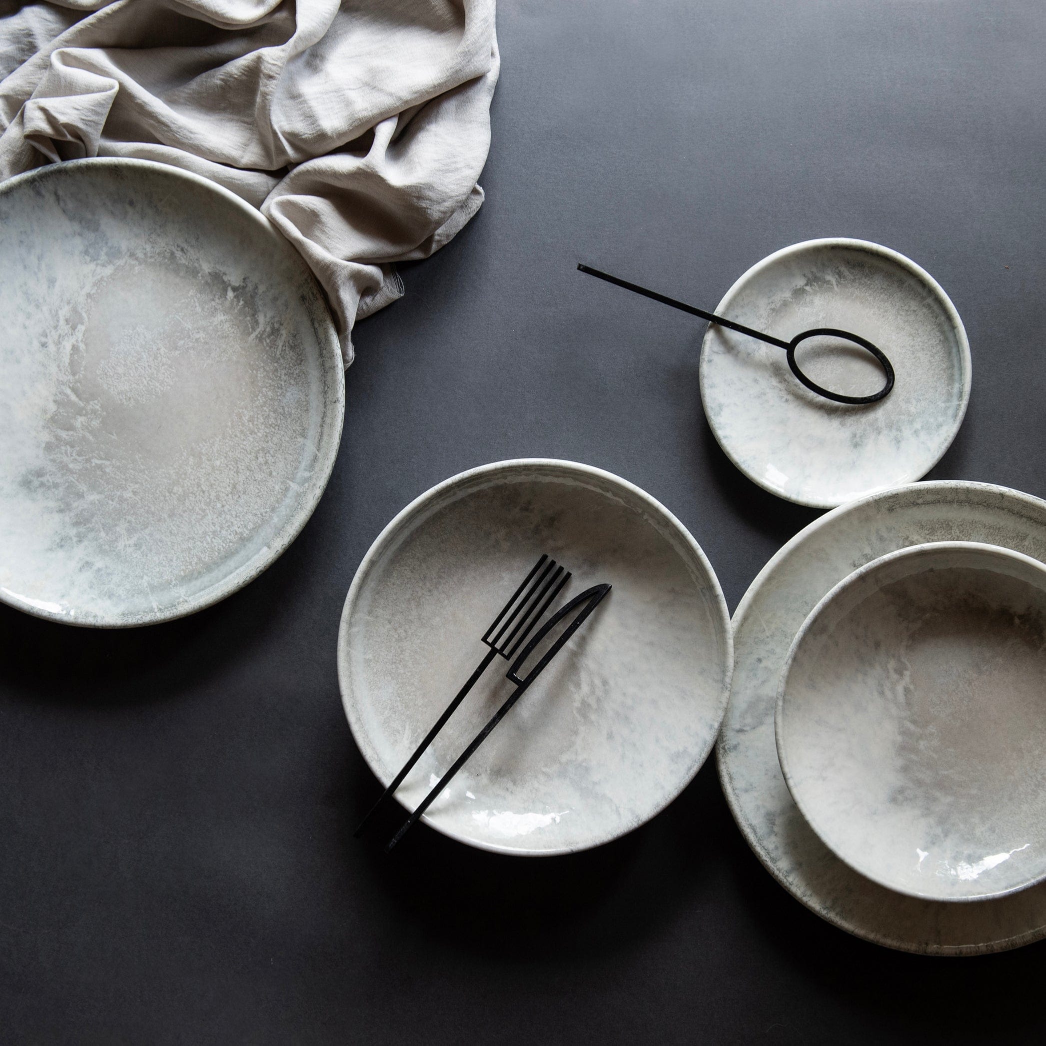 With soft shades of grey and olive green, Usko brings a subtle Mediterranean warmth to the table. Its clean, rounded forms are crafted from durable porcelain and finished with a silky matte glaze. Each piece has slight variations, adding quiet character to every setting.